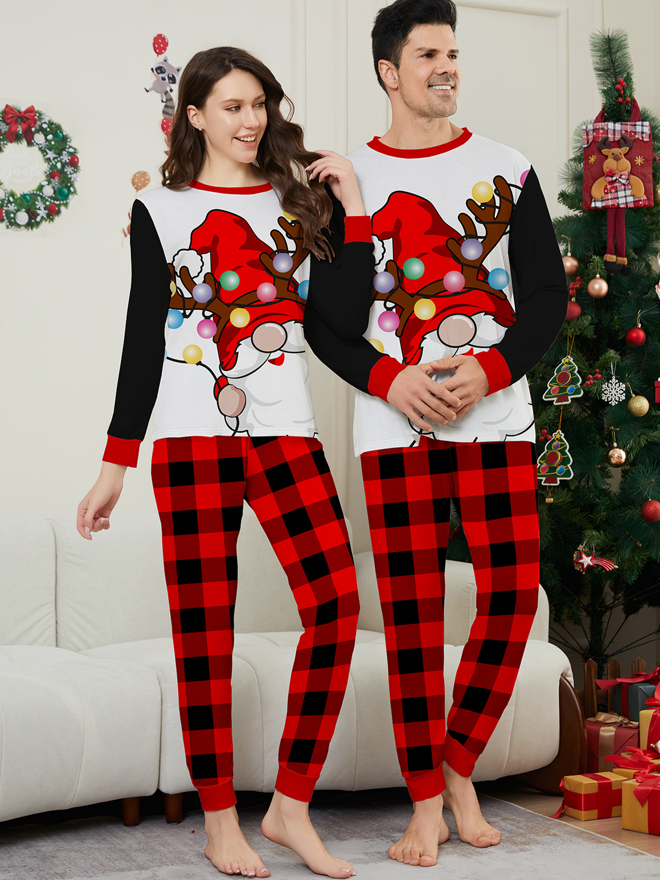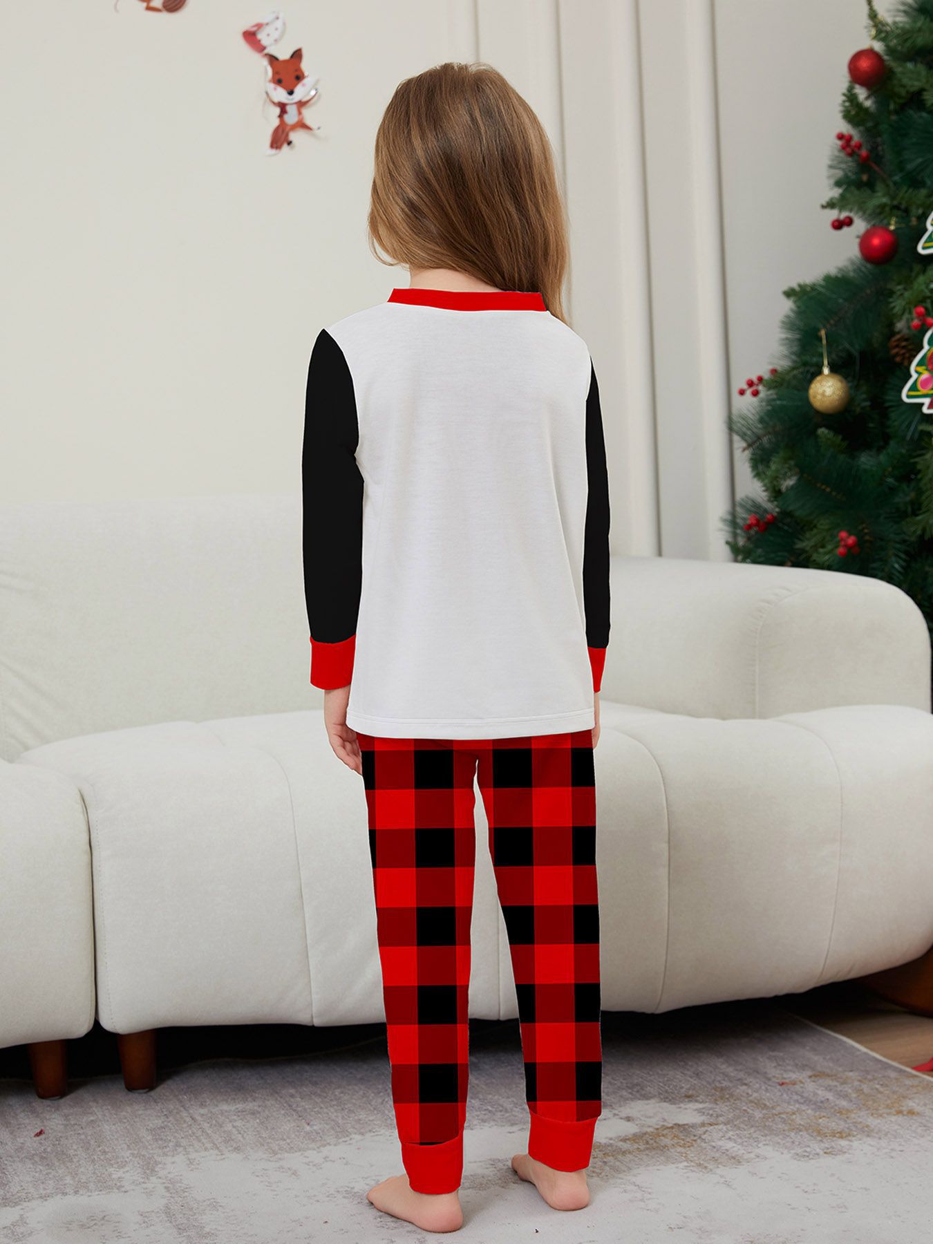 Christmas Santa Hat Plaid Printed Home Wear Pajamas Family Matching Set